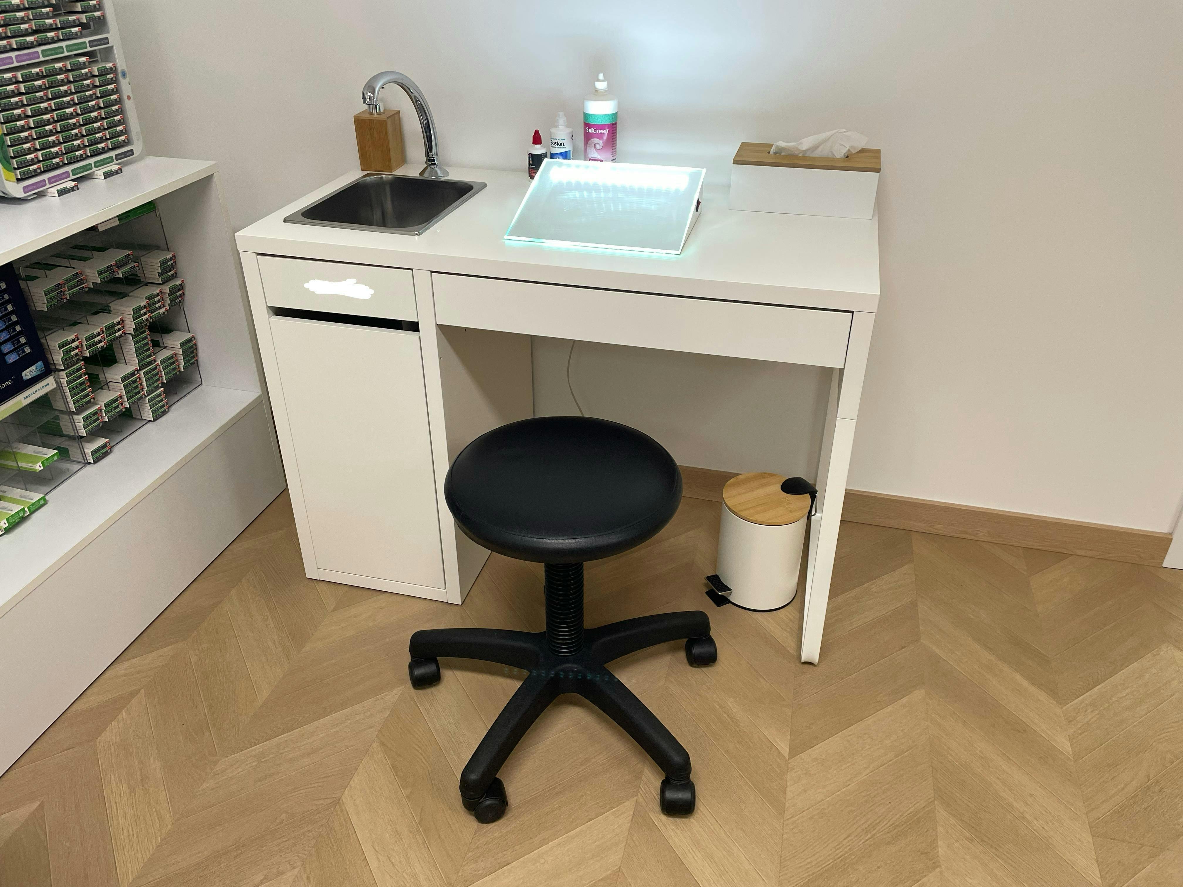 Progettato pensando al massimo comfort e alla praticità d'uso per il professionista, il nostro Tavolo Contattologia è la soluzione ideale per ottimizzare l'ambiente di lavoro. L'altezza regolabile della struttura garantisce una postura ergonomica ottimale, permettendoti di concentrarti al meglio sulle procedure di contattologia.